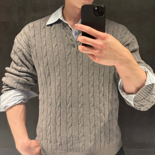 Lapel Twist Pattern Knit Sweater