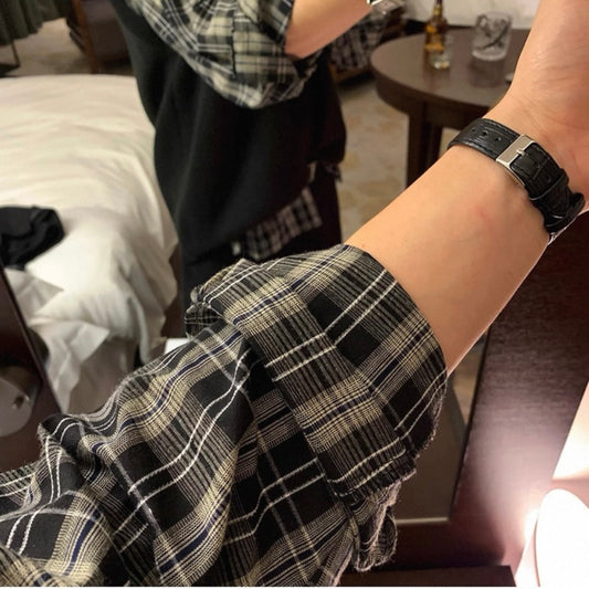 Plaid Sweater Round Neck Top