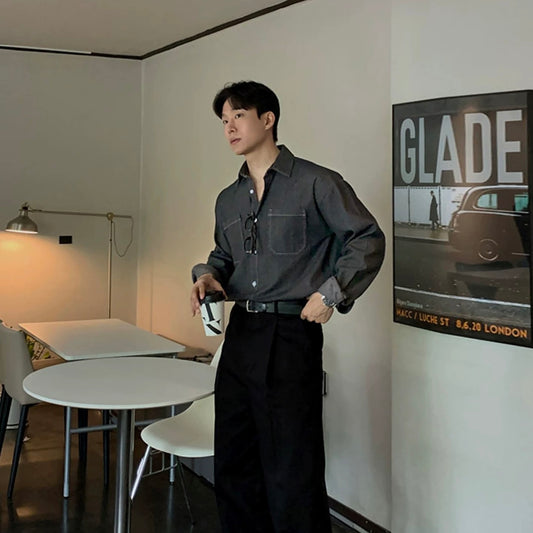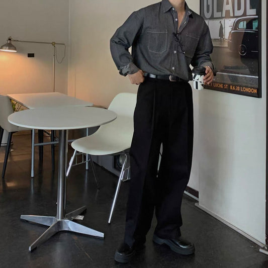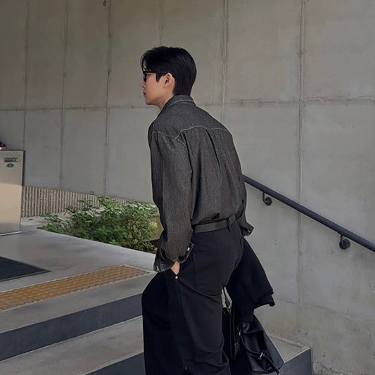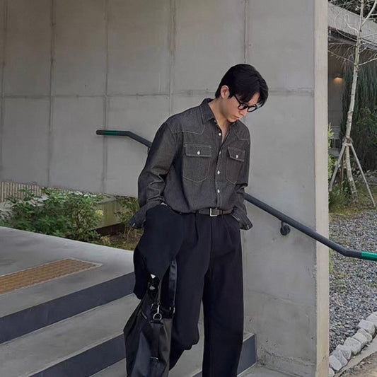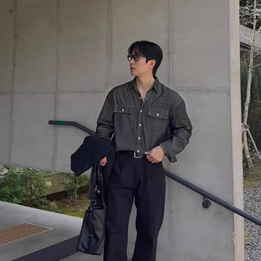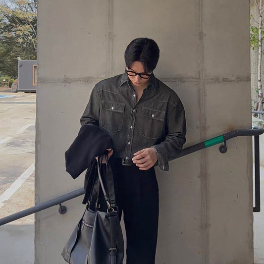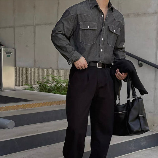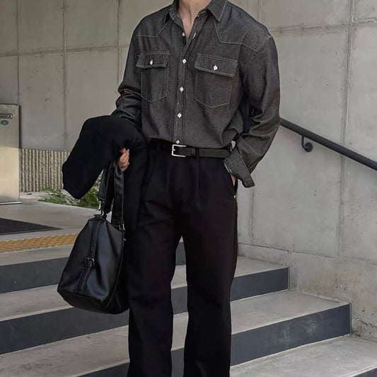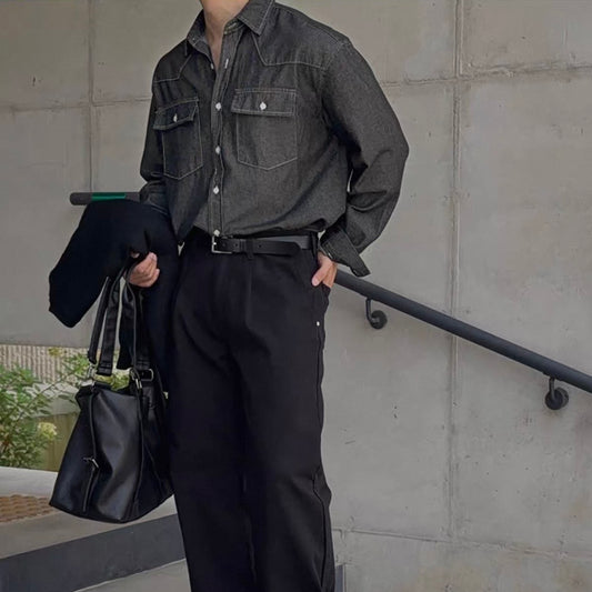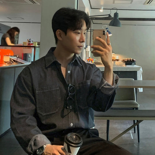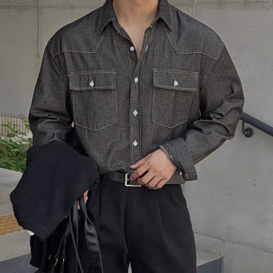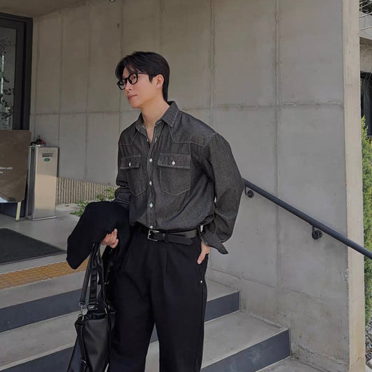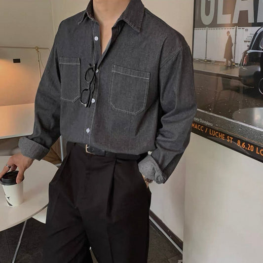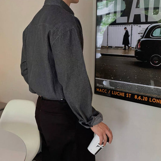 Trendy Long-Sleeve Denim Shirt