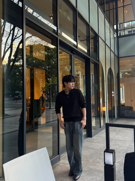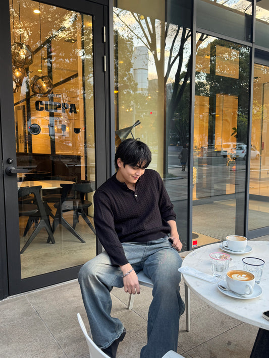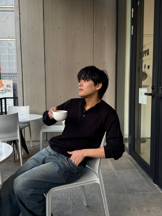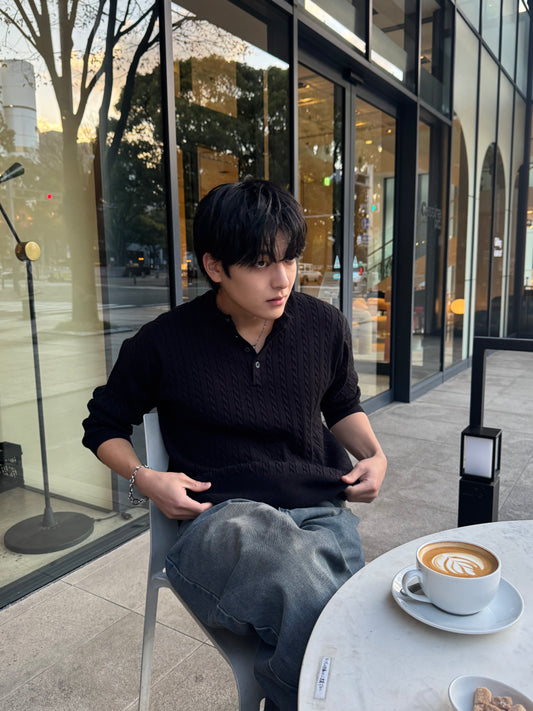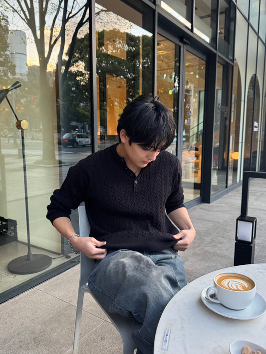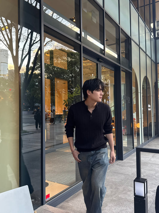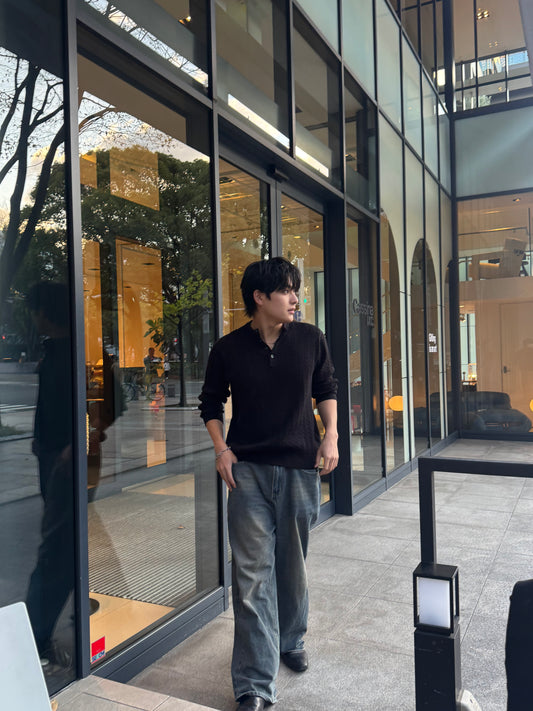 Henley Neck Knit Sweater