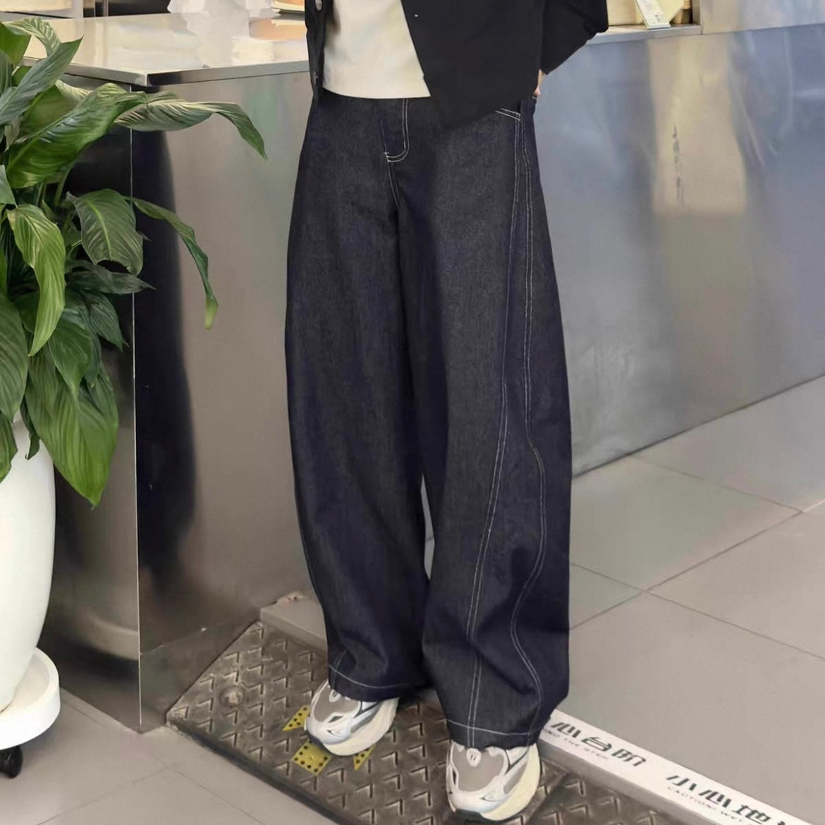 Washed Jeans Wide Pants